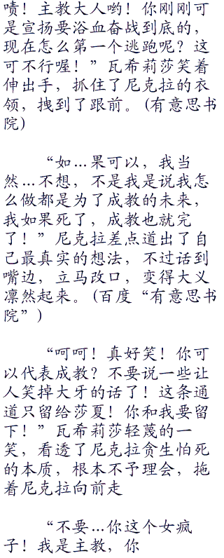 “尼克拉!一句话,投降或者死!”季腾川没工夫在这里浪费时间,而且这个尼克拉是个地地道道的小人,靠着渔翁之利爬上了主教位子,本身没什么才华,和右方有勾结。