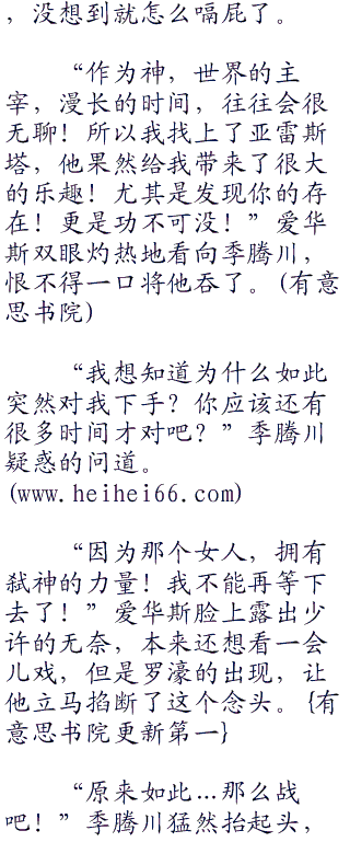 “原来如此,你们也盯上我了!看来人类文献对你们的介绍完全就是错误,所谓天堂地狱,本来就是一体!华夏神话也一样!”季腾川诡秘的一笑。