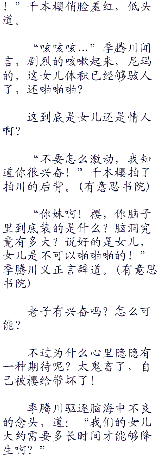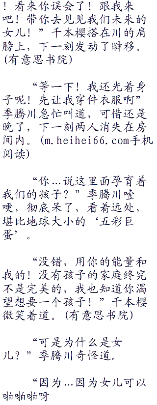 “你说过,我的生命形态很高,一般女人根本不可能给我生孩子,没错吧?”季腾川严肃起来。