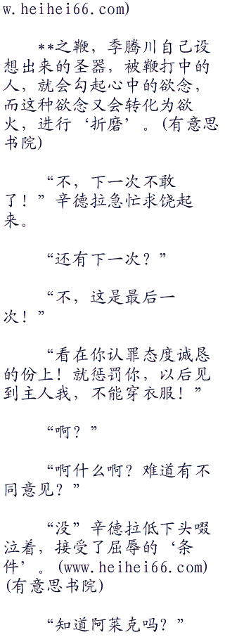 季腾川舒服地躺在靠椅上,辛德拉重获自由,膝盖着地,然后像狗一样,爬向川,解开川的裤子,然后将脑袋低了下去