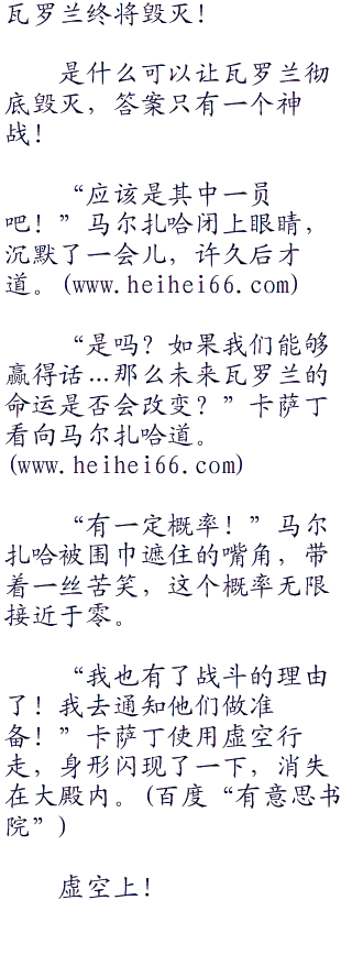 “是的,很强大的敌人,这将会是一场血战!”马尔扎哈怅然道