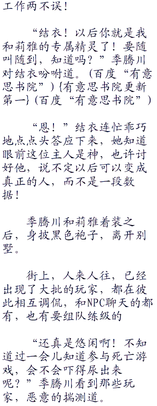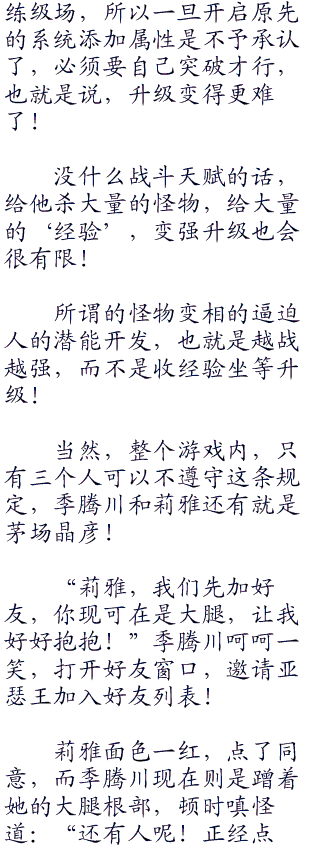 “你是GM吧!帮我把属性调到正”莉雅望向结衣,微笑着道,不过话还没说完,就被川打断了。