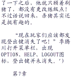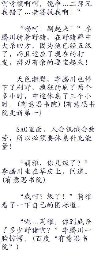 现在,季腾川终于理解,为什么茅场晶彦很恶趣味的让所有人都显出原形,扯掉他们的伪装,不然哪天结婚…还有XXOO就太可怕了,他恐怕也接受不了那种虚假!
