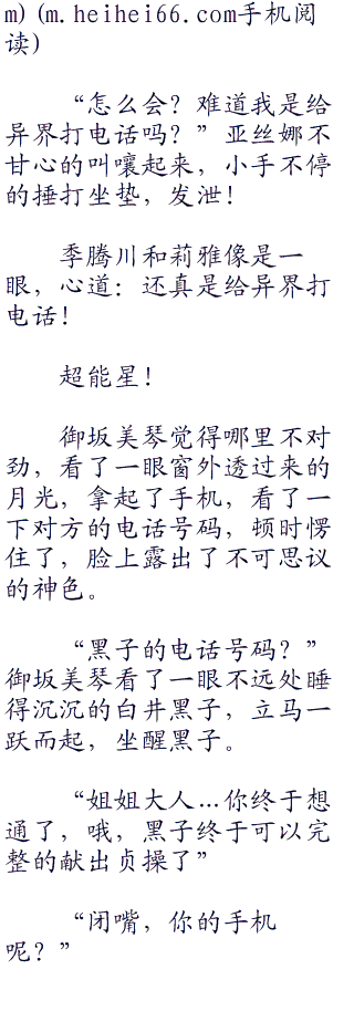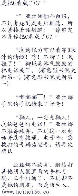 “啊?不可能,这是我妈妈的电话!”亚丝娜再一次确认了一遍,没有打错啊?