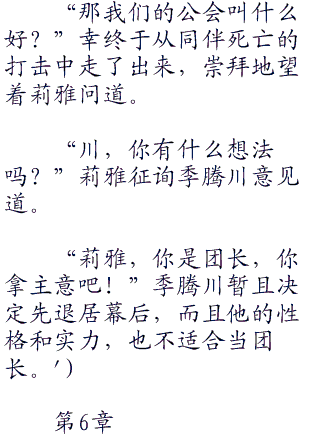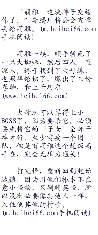 “卧槽…我爆出公会宣章了!”季腾川喜悦的大叫起来,太不容易了,杀了这么多精英,终于爆出个像样的东西了。更方便hei.