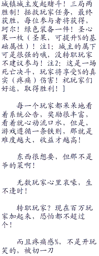 城主摸着下巴,思考了一会儿,道:“亚瑟王,如果是其他事情,本城主都可以卖你一个人情!但是…这件事”