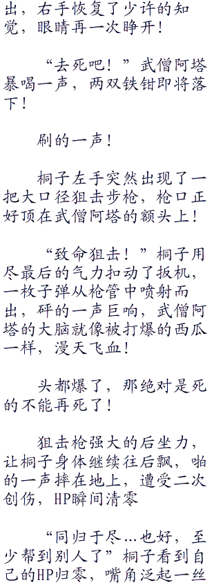 电话另一头,神代凛子愣了一下,看了一眼病床上的茅场晶彦,道:“SAO是假想空间!在进入游戏时,疼痛感知默认为%,玩家可以自己调,但是不会高于%,因为当游戏中致命疼痛超过%,会反馈到现实中的身体中,造成伤害,甚至诱发心肌梗塞导致死亡!
