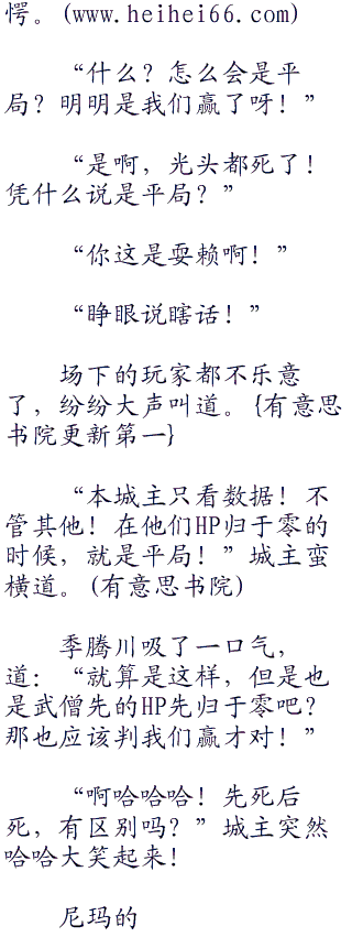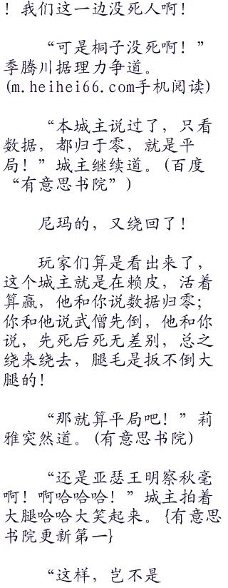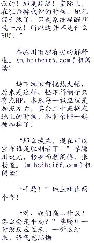 果然,季腾川的话一出,玩家们都停手了,的确,他们很想知道这到底是怎么回事,是不是系统BUG,但是为什么他们HP归于零,一定会死呢?