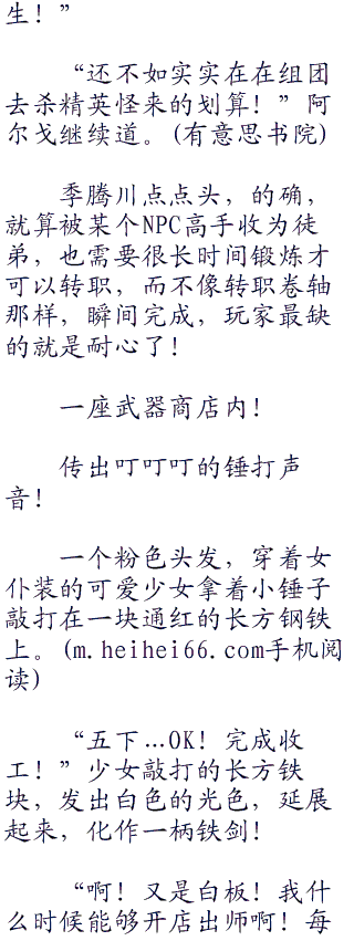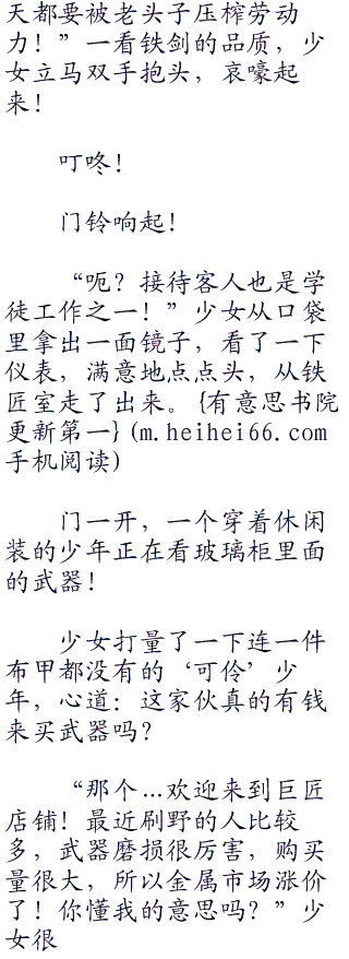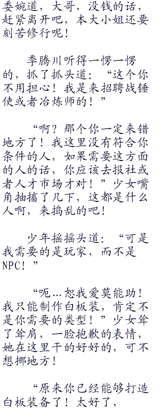 当然,这样一来,问题来了,生意太好,会将原材料打造成装备的也就季腾川和莉雅会,总不能一天到晚,都在哪里打造装备吧?