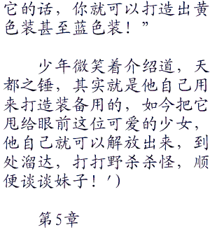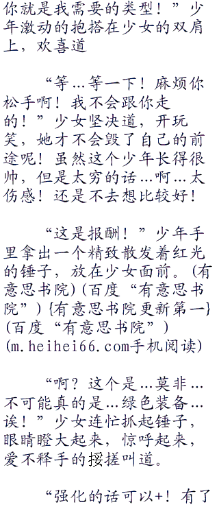 总之他要告别打铁生涯,每天对着火炉,有毛个意思,如果有妹子谈情说爱的话,倒也不至于怎么累!