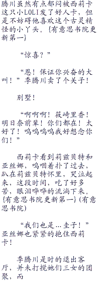 “西莉卡,以后你不会孤独!我要给你个惊喜!”季