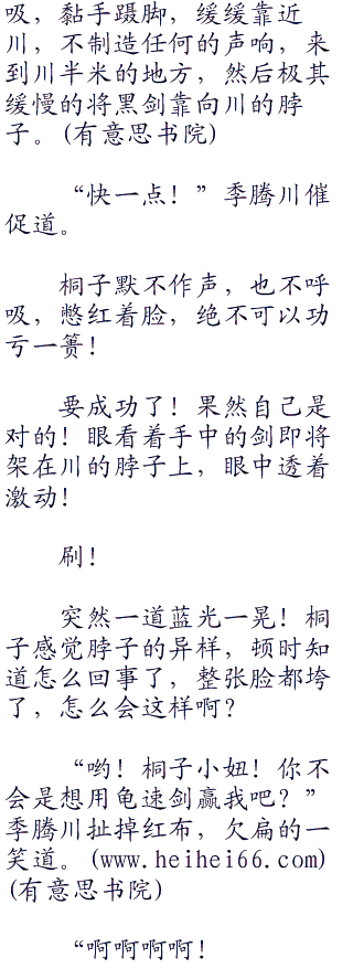 “为什么?明明蒙着眼睛,看到不!为什么…为什么总可以先发制人?难道他真的这么强吗?”桐子自信心受到了巨大的打击,这个大色狼为什么这么强?