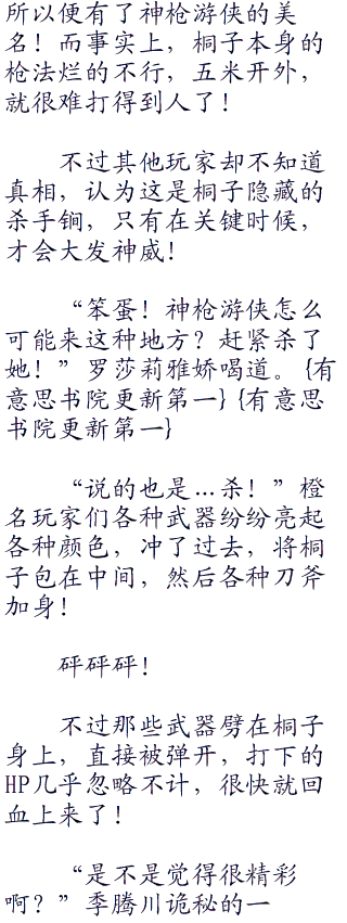 “咦?这个黑色装打扮?难道她是神枪游侠?”一个橙名玩家惊异道。