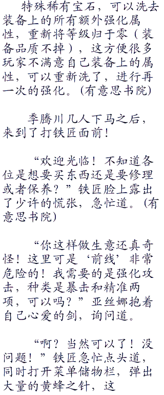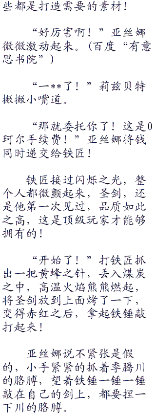 有了骑士团大量的珍惜原材料供应,莉兹贝特的战锤使冶炼师熟练度刷刷刷的往上涨,如今打造蓝色装备都手到擒来,运气好,都能够打造出绿色装备(相对较菜的绿装),她都没骄傲,你们骄傲个蛋啊!