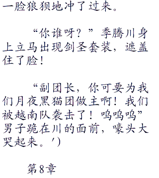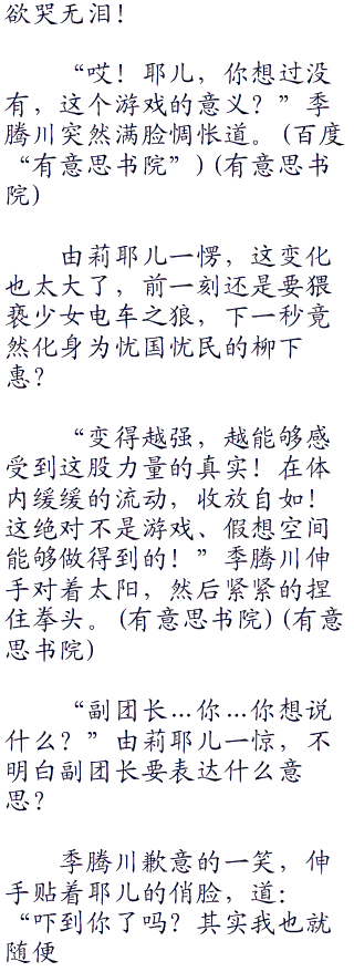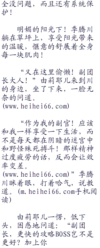 这一次季腾川没有参合,而是让莉雅带着亚丝娜和桐子去参加战斗,有莉雅和桐子在,亚丝娜的安全完