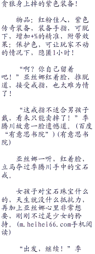 “亚丝娜!送给你!”季腾川拿出一枚红色的宝石戒指,是刀锋