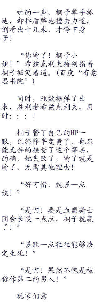希兹克利夫淡定的一笑,眼睛光芒一闪,举盾,似乎看破了桐子的攻击路线,轻松的格挡下来!