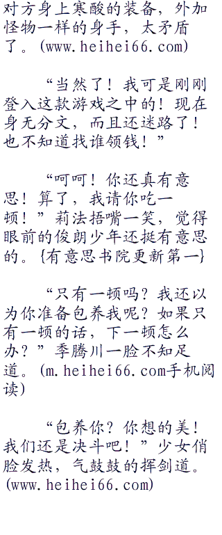 季腾川明白了,就是不让对方玩了,杀到对方放弃为止,还真够恶劣的!