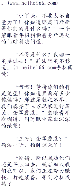 那个外貌普通的玩家沮丧的一笑道:“小姑娘,听我一句劝,不要浪费时间了!从哪里来回哪里去吧!”