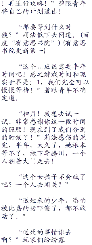 莉法和季腾川两人历经四天,终于赶到了世界树底下,不过围绕着十几万玩家,但是每一个玩家都唉声叹气!