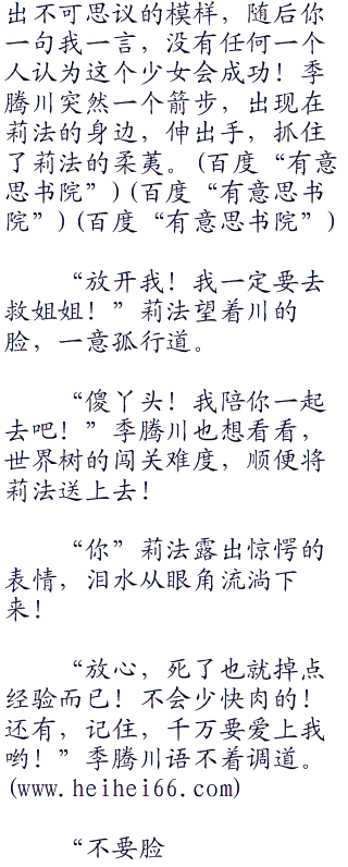 接着两人跋山涉水,领略精灵大陆的种种风光和自然美景,中间也发生了不少的战斗,比如西格鲁特,这个野心家,被川一剑给撸死了,还阴谋败露,被朔月给放逐了!