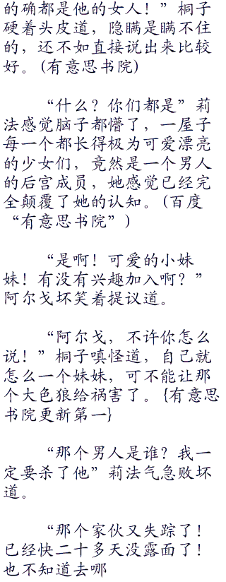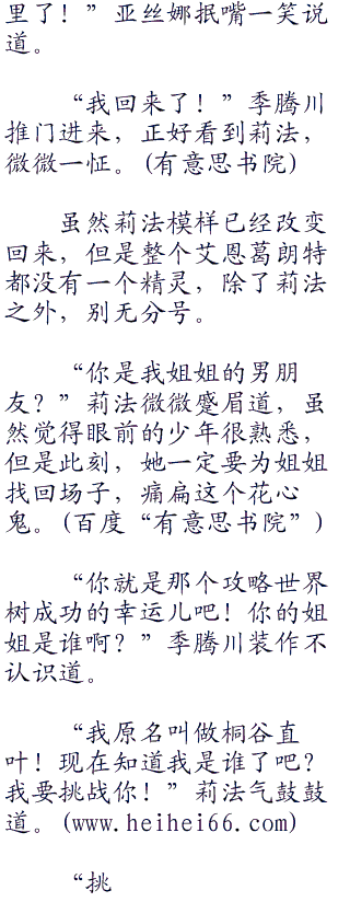 “姐姐,这是什么情况?”莉法不敢置信的问道,自己的姐姐竟然成了小三?