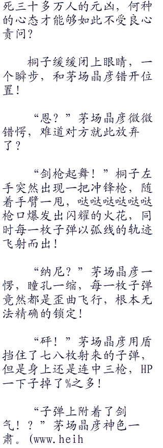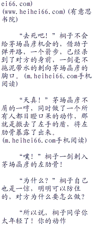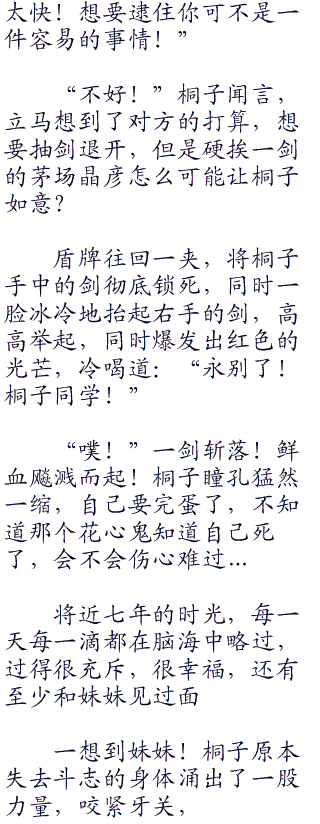 不过很可惜,茅场晶彦防守滴水不漏,根本不给桐子半点机会,满天的剑影,都给轻松的挡了下去。