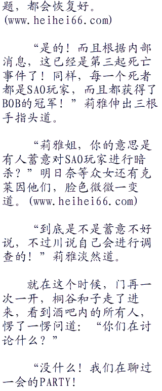 莉雅点点头,细说道:“事情发生在将近一个月前,前SAO玩家在家里突然心脏停止暴毙!死亡三天后才被人发现!”