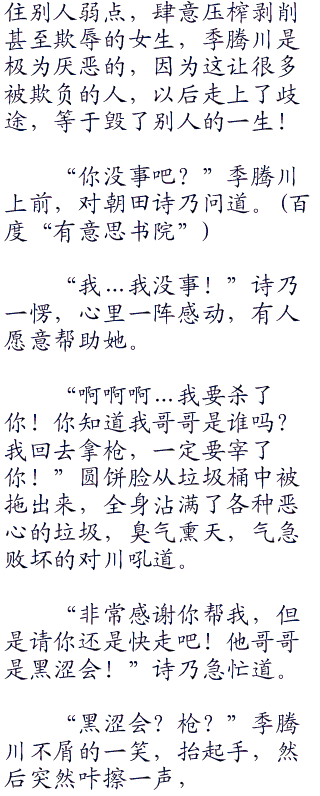 “那是当然的了!不和强者交手,是永远无法变强的!”诗乃理所当然道,她一定要战胜那段恐惧,只有诗乃不断变强,朝田诗乃才不会懦弱下去。