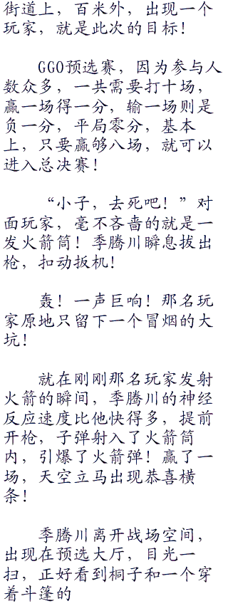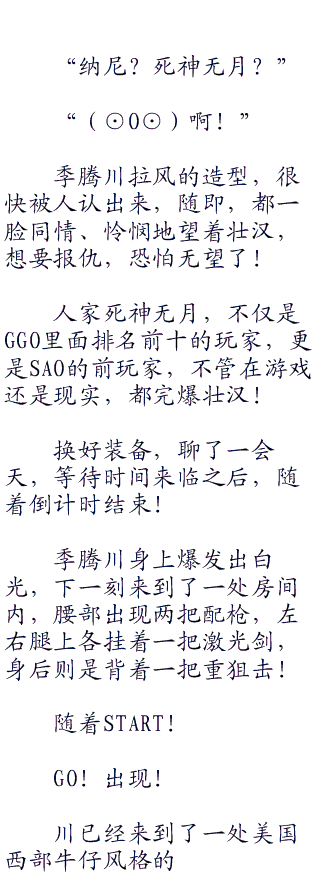 一进大厅,就充满了肃杀之气!每一个GGO玩家都冷着面孔,眼中透出若有若无的威慑和杀意!