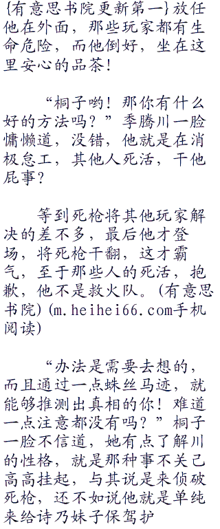 “别叫了!万一被其他玩家发现,我们可就惨了!”诗乃有点后悔和神无月组什么临时搭档,这样下去,迟早要被他坑死!