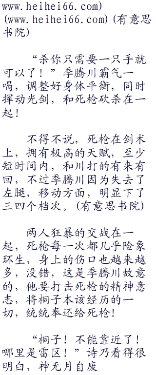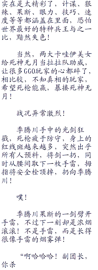 不得不说,死枪的战术极为成功,可惜他面对的是季腾川!