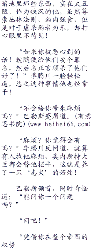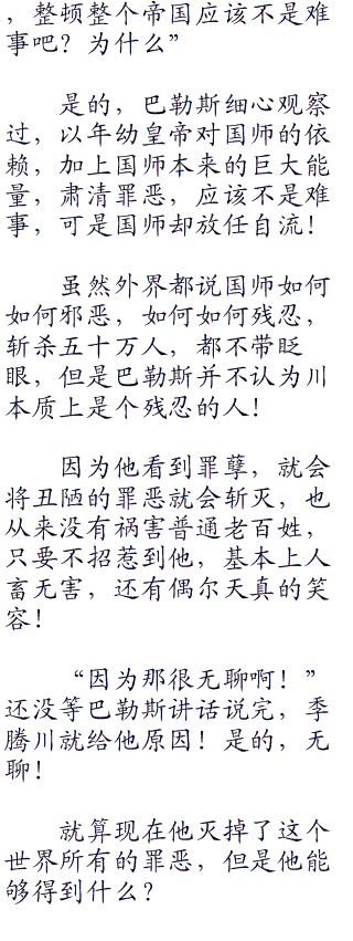 巴勒斯就是艾斯德斯的父亲,当初被川带回帝都之后,就用健壮死囚的内脏给他换上,并且任命他为禁卫军的副统领!