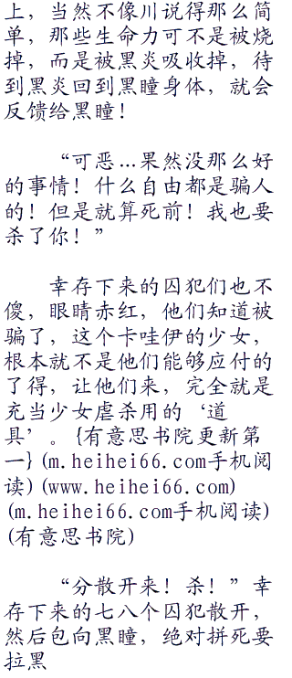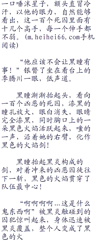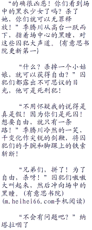 “黑瞳,想要见到你姐姐,至少要表现出你足够的强才行!一百个凶恶囚犯,对现在的你来说,完全不多!杀光他们,我带你去见你姐姐!”季腾川转过脸,对黑瞳道。