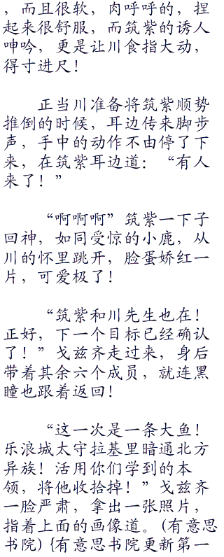 “是这样的…筑紫…我有个不情之请,说出来,怕你不答应”季腾川搓着手,一脸腼腆道,眼睛却盯着筑紫的大波。