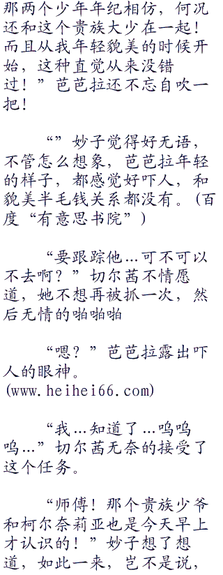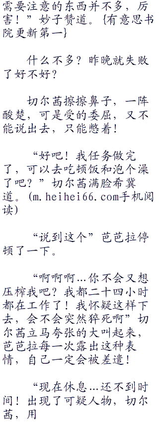 “我已经做的很多了…呜呜呜”切尔茜无力趴在桌子上,呜咽起来,想起来,好心酸啊,为了任务,连身体都赔进去了!