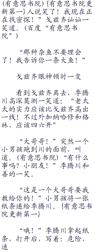 “老齐!这么悠闲吗?”季腾川突然的出现在座椅旁!