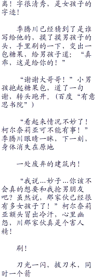 “呃”柯尔奈莉亚听到声音,一转头,看到远方,什么都没有。