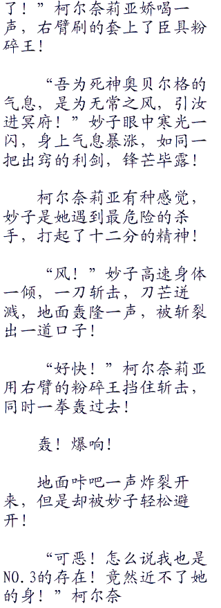 “是”妙子点点头,捏紧拳头,既然已经确定为此次的目标,那么绝不会手下留情的。
