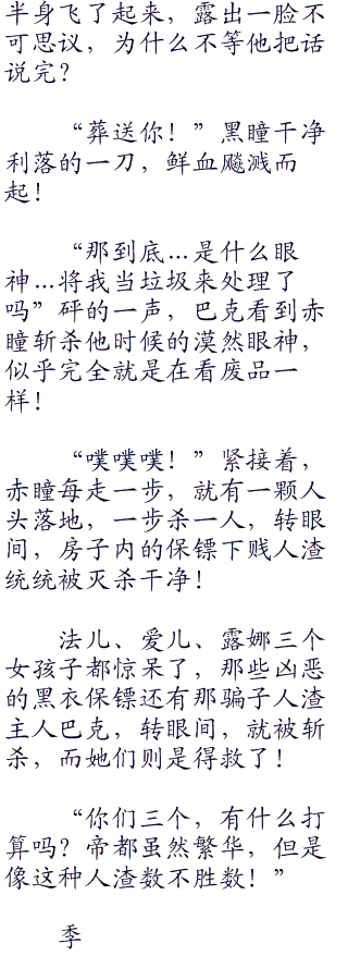 “我是来找乐子!你们就是帝都传说中的极端人群吧?”季腾川走到两个保镖身后,对两个女孩子柔和道:“到我身后来!”