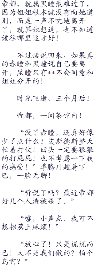赤瞳想了一下,道:“川…哥哥,帝都真的像你说的那样,那样的人渣很多吗?”