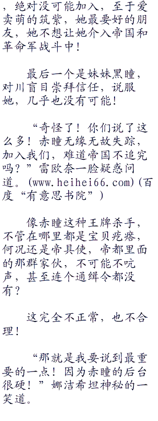 娜洁希坦望向赤瞳,赤瞳点点头,表示可以说,而且既然以后就在帝都扫除罪恶,迟早要碰上的,隐瞒根本就没有必要。