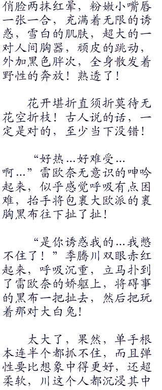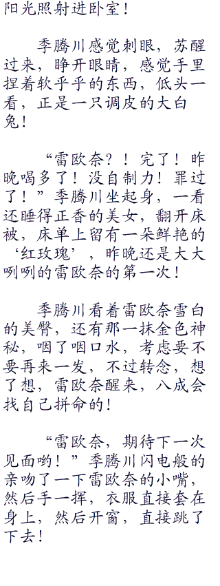 季腾川伸手抱起喝的已经开始满嘴梦呓的雷欧奈,扛起来,就往楼上走!