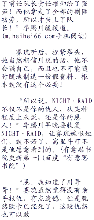“喂…放开我啊…我还要给同伴做坟墓呢”莎悠被雷欧奈抱住,立马不甘的叫起来。<a href="hei." target="_blank">hei.</a>