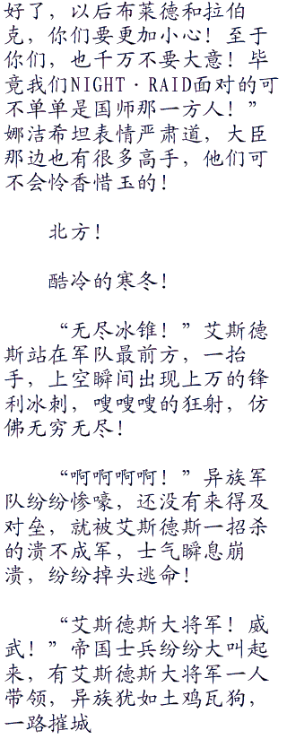 “比想象中的更可怕!她拥有最强的帝具之一,魔神显现·恶魔之粹!见过她发威的人,都不会想面对她!保守估计,想要对付她,至少需要十位帝具使联手,外加至少一百万精锐!”娜洁希坦凝重道,说了这么多,就是人海战术,活活耗死艾斯德斯,想要正面战胜,几乎没有可能。有意思书.院首发