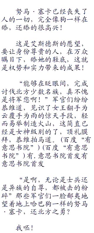 作为艾斯德斯的士兵,他们见识了艾斯德斯蹂躏那些异族头领的场景,个个都凄惨万分,活着就是一种受罪!