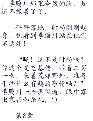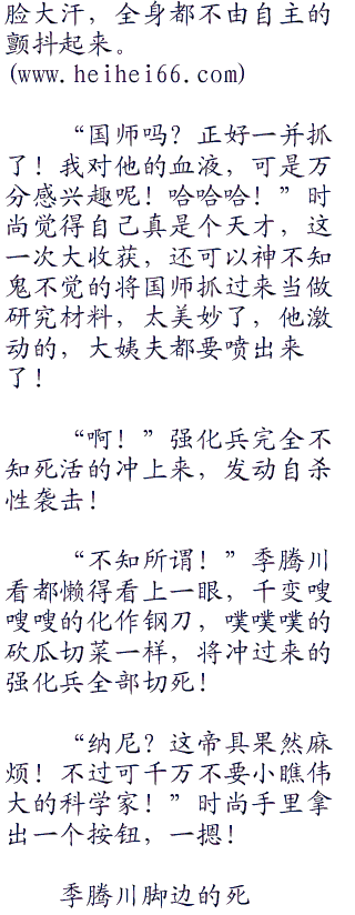 “OK!那是当然的了!”季腾川起身走向那些残余的强化兵!