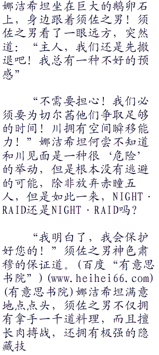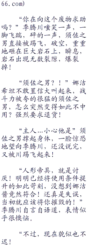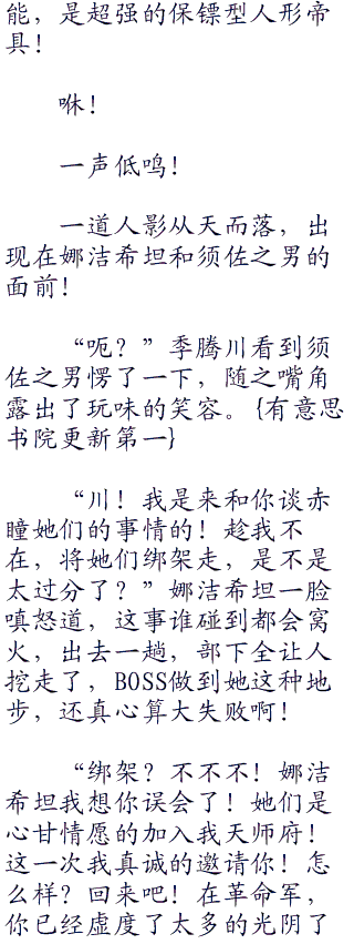 “约我见面!”季腾川一看内容,心里顿时留了一个心眼,娜洁希坦的智谋绝对不容小觑,不然也不会将NIGHT·RAID发展到今天这个程度,让帝国‘奸邪’闻风丧胆!
