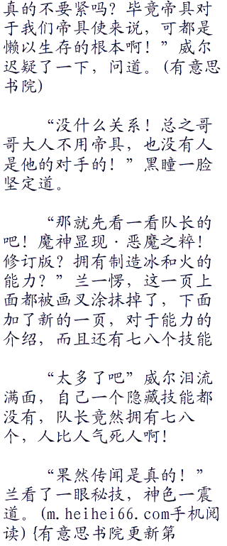 威尔一听,顿时垂头下来,果然是这样,怪不得自己一直都找不出,原来不是天赋差,而是压根就没有啊!