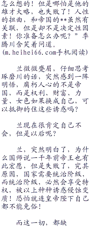 “原来如此!”兰点了点头,承认道:“没错,我想要做高官,然后改变整个帝国”
